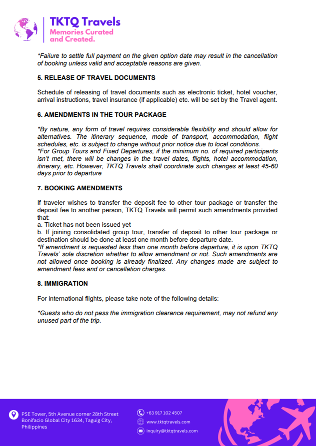 PACKAGE 1: ITINERARY